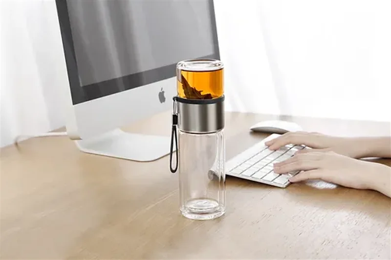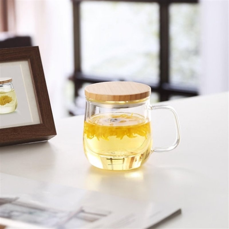 Staklena šalica s filterom i drvenim poklopcem